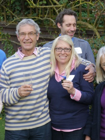 Linda and John with the Skipper on arrival after the hurricane force storm