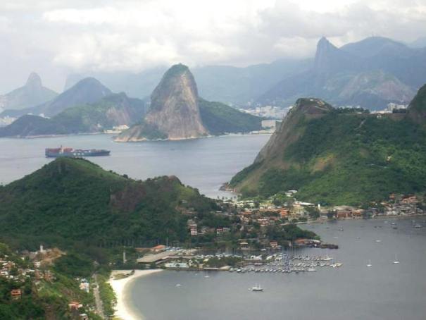 The Sugarloaf mountain and in the distance on the right the Corcovado topped by the Cristo Redentor. If you’ve got VERY good eyesight, in the foreground you can see Mina2 at the end of the nearest pontoon