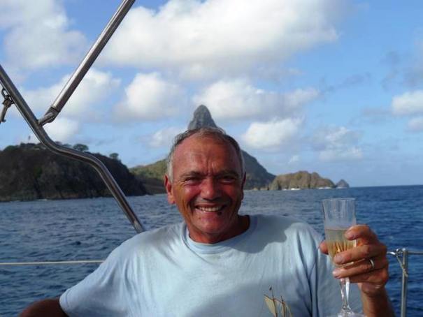 Lawrence celebrating our arrival and his 70th birthday. He really must see a doctor about that termite hill growing out of his head